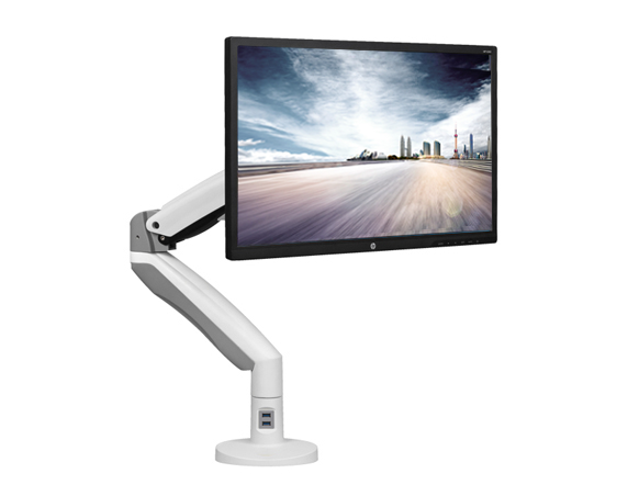 液晶显示器桌面支架,适用于17-32寸主流液晶显示器,此款支架采用航空铝合金材质,内置气弹簧,可满足使用者各种角度的随意调整,自由悬停于任何调整位置。配上USB和音频转接线,让使用者可轻松拓展各类试听设备。