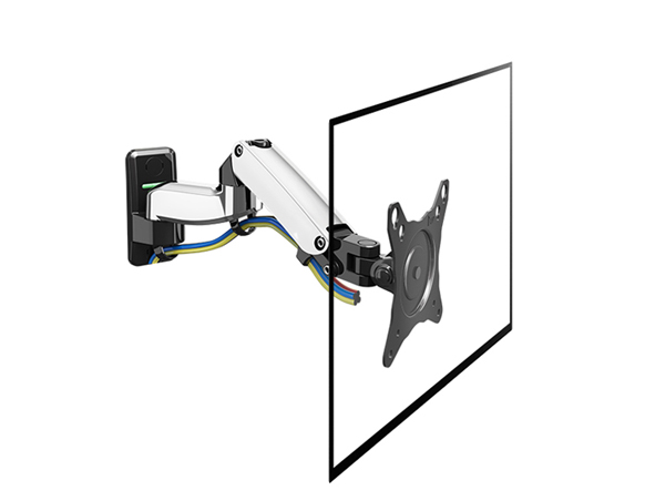 液晶显示器支架,适用于17-27寸主流液晶显示器,此款支架采用航空铝合金材质,内置气弹簧,可满足使用者各种角度的随意调整,自由悬停于任何调整位置。配上USB和音频转接线,让使用者可轻松拓展各类试听设备。