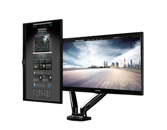 此款液晶显示器支架,人性化的人体工学设计,美观时尚的外观,适用于主流17-27寸(显示器重量在2-6.5千克内)液晶显示器,使用者可随意调整观看角度,支持显示器360度旋转,轻松实现横竖屏切换。