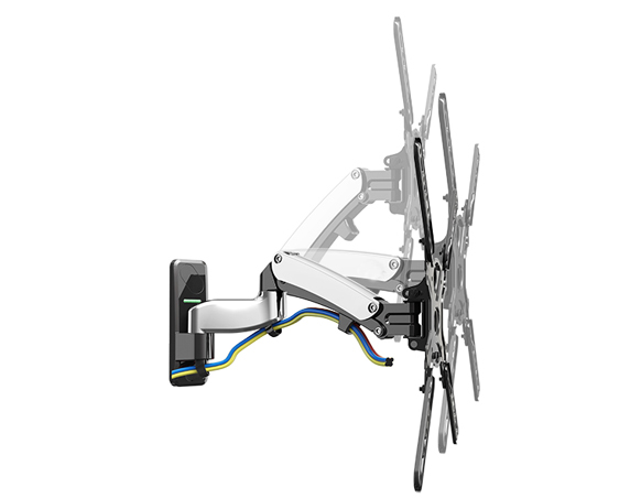 液晶电视墙上型悬臂支架,可满足使用者任意高度和方向的观看角度需求,优质的铝合金材质和内置的气弹簧,外形时尚美观,根据电视机的实际重量调整气弹簧的受力力矩从而让电视机在不同的高度位置自由悬停。